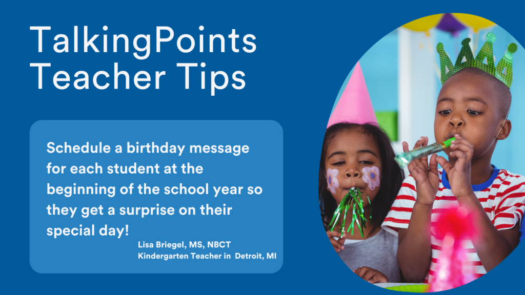 How does she manage that? She simply schedules the birthday messages in her TalkingPoints account when she gets her roster. Then, throughout the year, families receive their sweet messages and kids get a little extra attention.