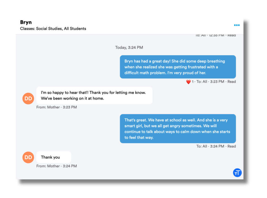 Sharing check-ins and updates around students’ social goals like these can be enlightening for families.